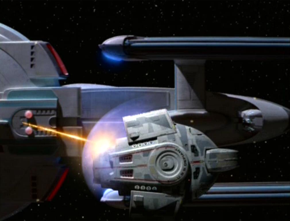 The biggest bit of goofiness happens in part two, when the Defiant arrives in time to actually make a difference. At most, a few days pass between the time Sisko contacts Kira and the showdown between the Defiant and the Lakota. It’s never explicitly stated where the showdown takes place, so it might have been a ways from Earth. But it was close enough where the Lakota could respond and where Leighton viewed it as a threat.