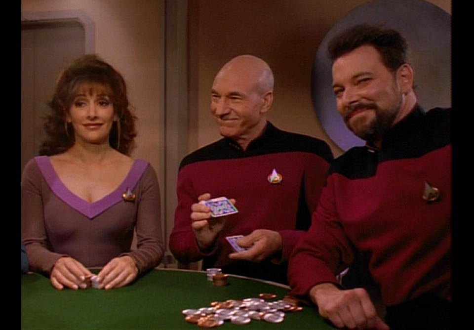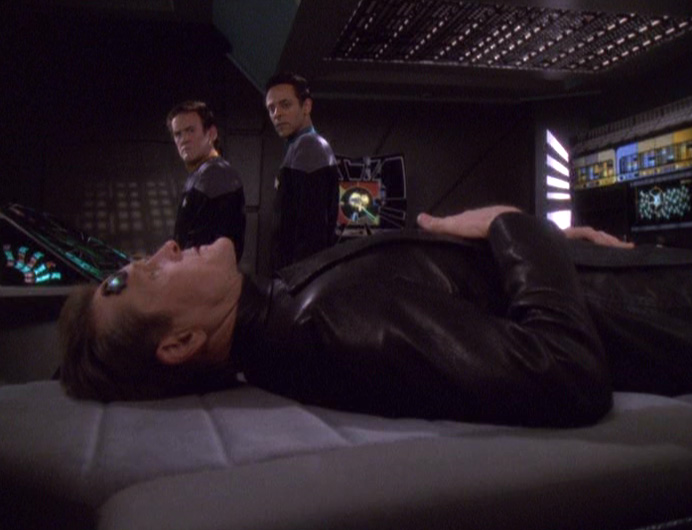 Also, it’s odd that during the Enterprise-D’s mission, Riker would have so much time to spend on the holodeck. In the original episode, Riker actually spends time with Worf in another holodeck program (we see the after effects when Riker has to go to sickbay with a broken rib). Was Riker making Data pull all his shifts, or something? It’s not as if the Pegasus mission lasted more than a few days.