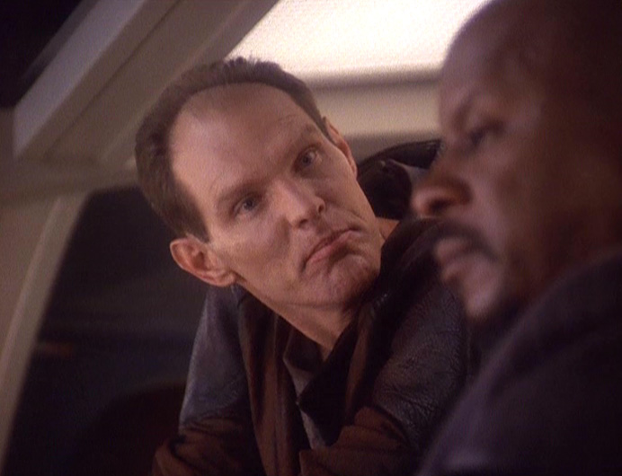 Logical goofiness aside, this episode is a favorite of mine. The banter between Eddington and Sisko is strong, better than the uneven showing in “For the Uniform”, the episode in which Eddington was captured. Part of that is the stronger showing here by Avery Brooks but also the angrier Eddington we see.