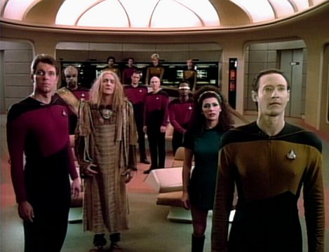 Again, âEncounter at Farpointâ is a pilot episode and should be given some slack (probably as much as any Trek episode other than âThe Cageâ and maybe “Where No Man Has Gone Before”). But there were clearly some editing issues. Why, for example, did Riker and Data formally meet on the holodeck when Data was at ops when Riker rejoined the saucer and the star drive? For that matter, why didnât Riker just summon Data using his communicator? I know it allowed for the introduction of the holodeck, but it sure seems off. It feels like the holodeck scene was added later.