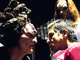 Part one: Voyager receives a message from Seska indicating she and Chakotay’s child (spawned without his consent back in “Maneuvers”) are in danger. Chakotay and Janeway decide to go into Kazon territory to try to recover the child, but Seska’s message turns out to be a trick to lure the ship into a trip. The Kazon take over the ship — with only the Doctor and Betazoid psychopath Lon Suder (Brad Douriff, returning from “Meld”) on board — and desert the crew on a harsh planet with no resources. Paris, however, does escape in a shuttle with the hopes of asking a Talaxian convoy for assistance. But his fate — as the episode ends — is unclear.