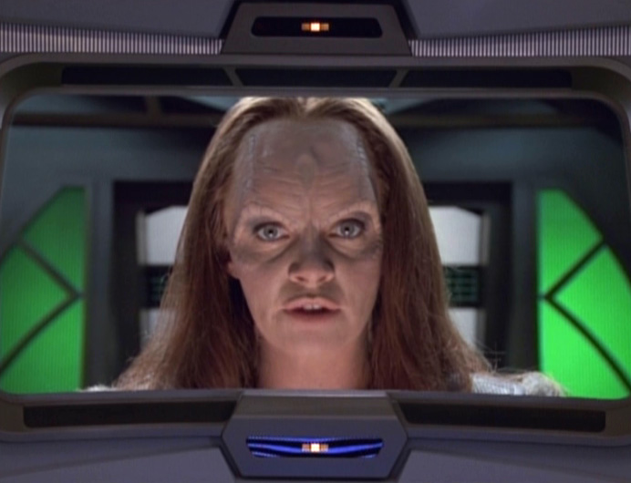 There’s the whole issue in part one of Voyager going deep into Kazon territory to get Chakotay’s “son.” The action is sort of compelling, but the implication is that Voyager is far outside Kazon territory — when we’ve seen essentially the same Kazon faces since “Maneuvers” or even back to “State of Flux” — and needs to get into it. This is a spot where the creators messed up their attempts at serialization, as we’ve noted in prior reviews.