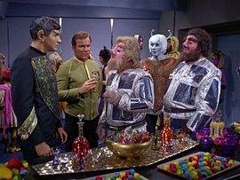 The Romulans technically arrived first, but the Klingons were TOS’ main bad guys, a fact that is especially true in the movies (Klingons appear in five of the six TOS films). Instead of being mysterious and enigmatic like the Romulans, the Klingons clearly have had lots of recent dealings with the Federation, as Kirk is able to describe them — or, at least, how he sees them — without much couching to the Organian leaders. Klingon bastards.