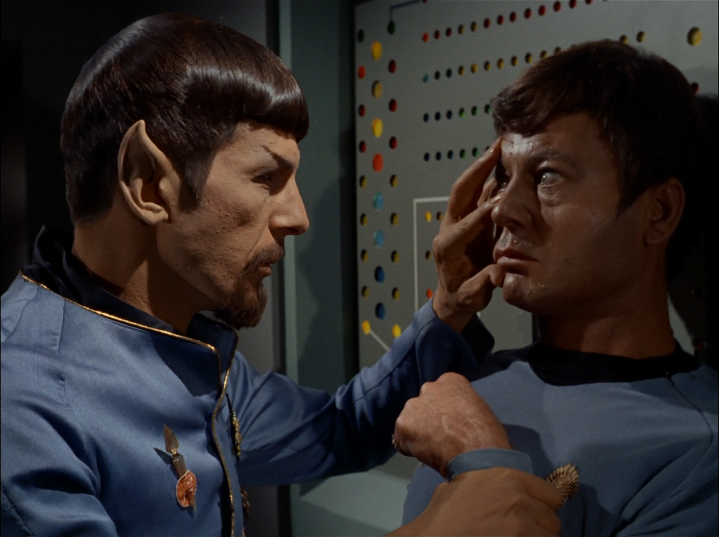 After behaving strangely for several days — throwing soup and stuff — Spock tells Kirk he must go to Vulcan to engage in a mating ritual, a diagnosis McCoy confirms. Kirk, never one to devalue a good mating ritual, defies orders and takes Spock to Vulcan, where he and McCoy accompany Spock to a sort of wedding ceremony. But Spock’s betrothed wife T’Pring (Arlene Martel) chooses a challenge (invoking an ancient right) and surprisingly picks Kirk as her “champion.” Figuring that the weakened Spock might be in trouble if he has to fight someone else, Kirk agrees — and then learns the fight is to the death. Spock, unable to stop himself because of his “blood fever,” goes full on after Kirk, before McCoy sneaks in an injection he says will help Kirk deal with Vulcan’s arid climate and atmosphere. Shortly thereafter, Spock appears to kill Kirk, and McCoy beams back to the ship with the body. Spock then learns T’Pring picked Kirk as a way to ensure she could be with another dude (the details aren’t that important). Back on the ship, Spock arrives in sickbay, all set to turn himself into the authorities when Kirk (alive and well) comes from behind a corner. Spock briefly reacts with joy, in a signature moment of the series, and learns McCoy actually injected Kirk with a substance to knock him out and simulate death. Then, Kirk and Spock head back to the bridge to mind the store.