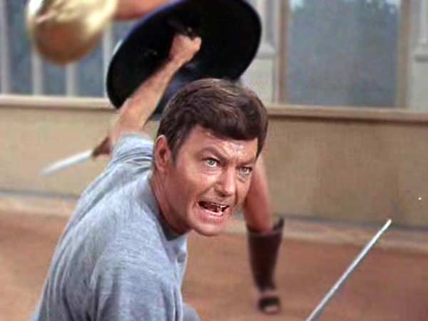 Kirk apparently goes all rogue and takes the Enterprise into Romulan territory without authorization. The Enterprise is quickly surrounded by Romulan ships that have Klingon design and sport new and improved cloaking devices that render ships invisible and (for the first time) hidden from tracking sensors. Kirk and Spock beam over to one of the Romulan ships to face the music and Spock reveals that Kirk has gone nuts and then apparently kills Kirk in a struggle. But itâs all a ploy to get a cloaking device and neutralize the new Romulan threat, and Kirk (alive and well) poses as a Romulan and steals the cloaking device while Spock distracts the Romulan commander (Joanne Linville) by (ahem) throwing her a few curves. The Enterprise barely escapes after Scotty incorporates the cloak on the Enterprise. With the cloaking device in hand, the Federation will be able to negate any new advantage and keep the status quo between the two superpowers.