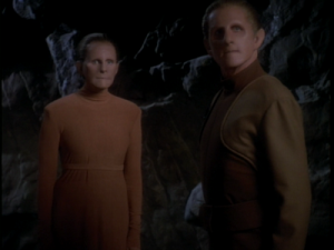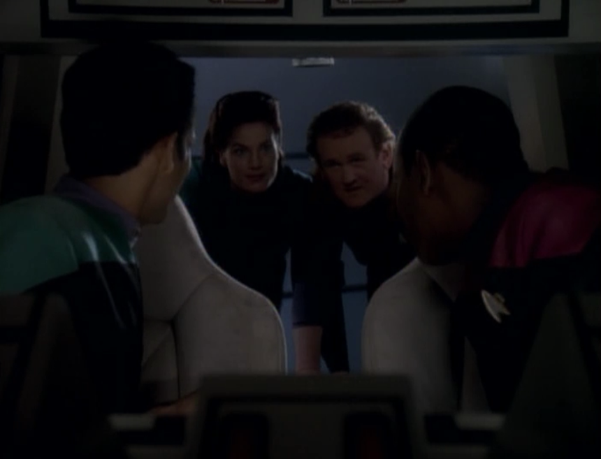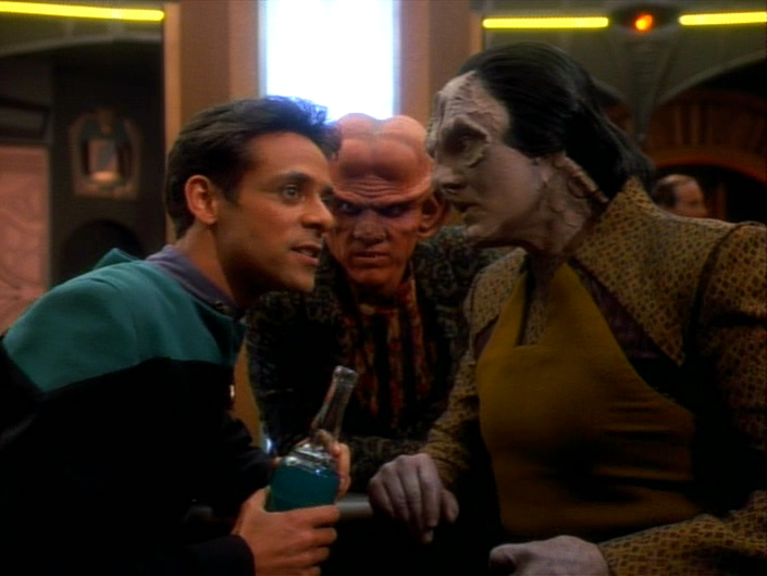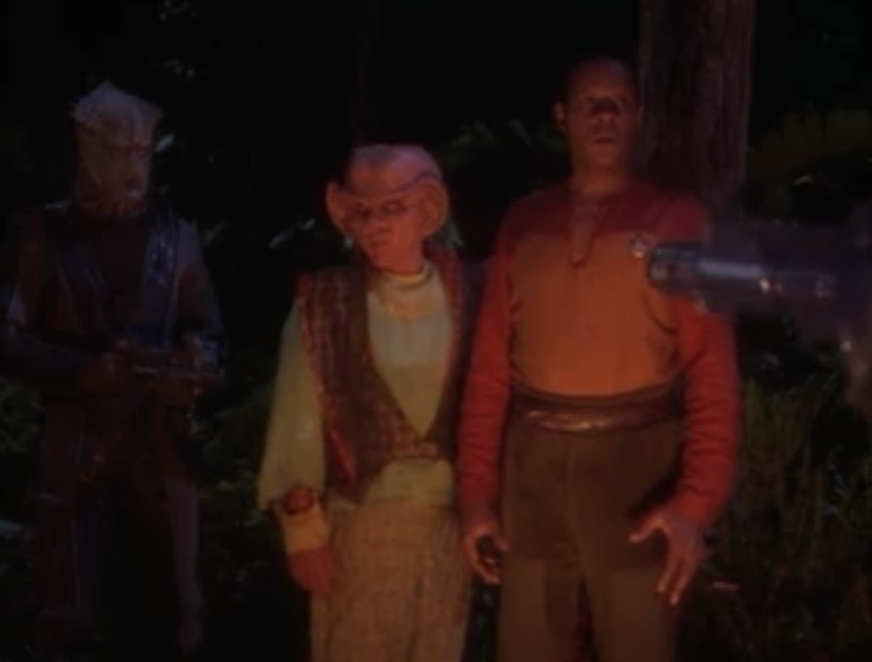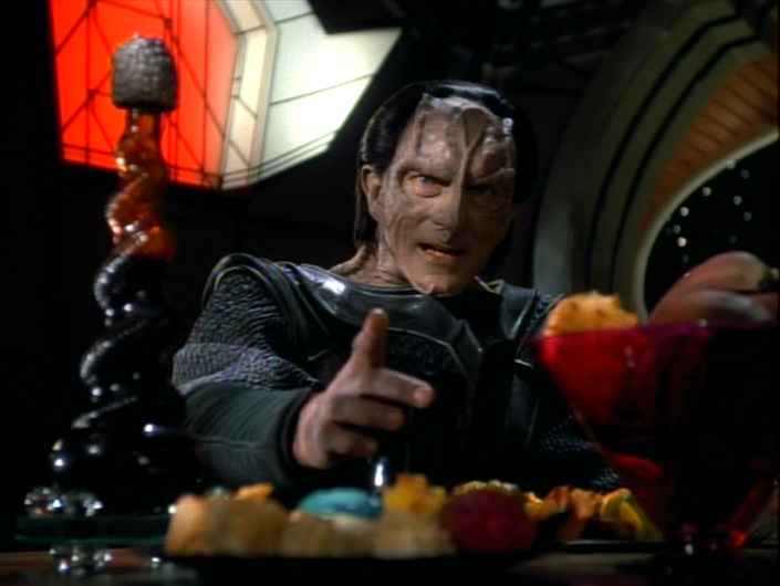 2) Part one begins with Kira talking with the senior staff (minus Sisko) about how they could defend the station against a Dominion attack. It’s necessary for exposition (I guess) but it seems odd to have the convo apparently two months after the events of “The Jem’Hadar”. What had they been doing for two months? It’s not weird that the conversations were ongoing — but the dialog would seem to indicate that they took forever to reach pretty obvious conclusions.