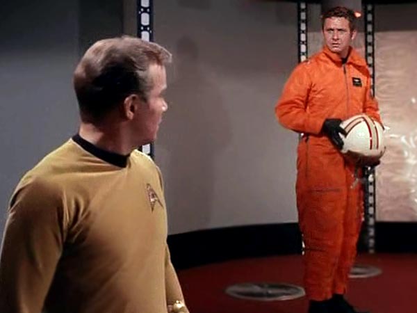 I know I’m being hard onĀ an episode that almost deserves pilot-level (no pun intended) treatment. In all honesty, IĀ like “Tomorrow is Yesterday”Ā a lot.Ā NimoyĀ found theĀ right notes as NimoyĀ and particularly Shatner might have turned in one of his best performances. His scenes with Christopher are great, and the interrogation where Kirk calmly refuses to provide any information to the Air Force officers who captured him was pitch-perfect. Gregarious-but-authoritative Kirk is one of the things Shatner did very well. He doesn’t bark at Christopher as to why they can’t just send him back to Earth. He explains it calmly, but it’s clear who’s in charge.